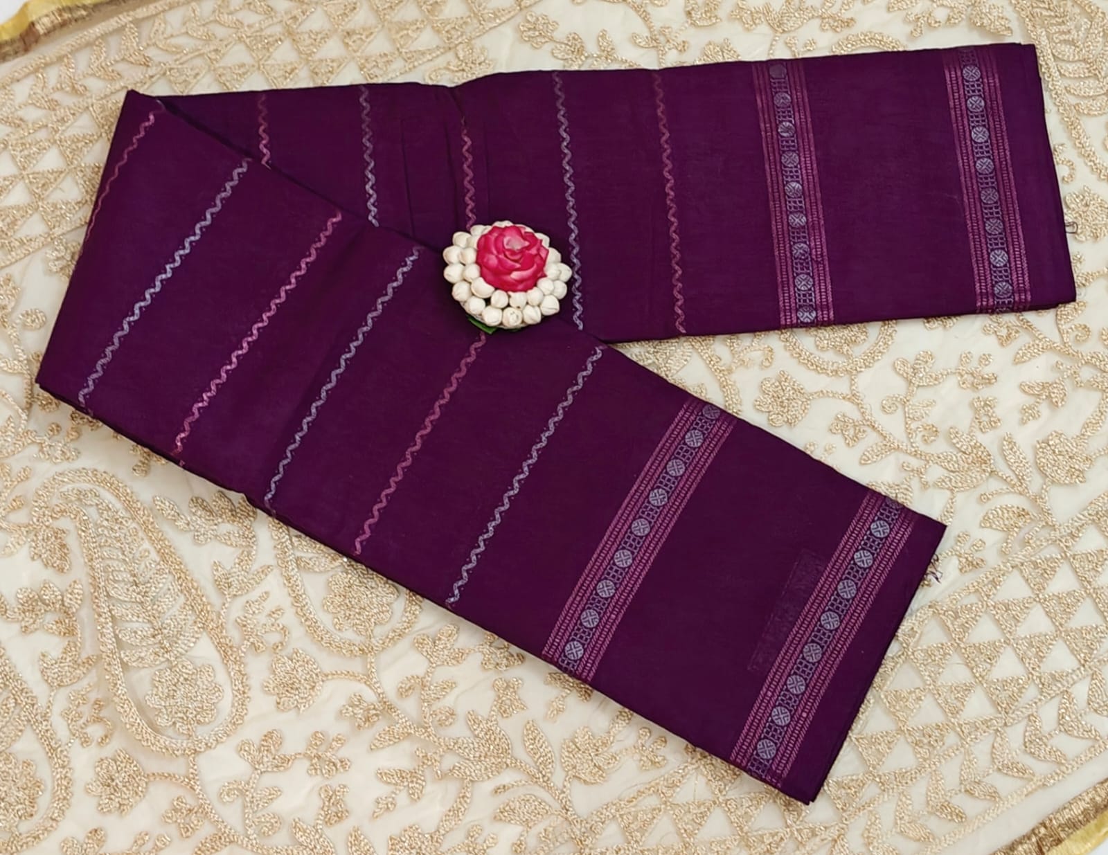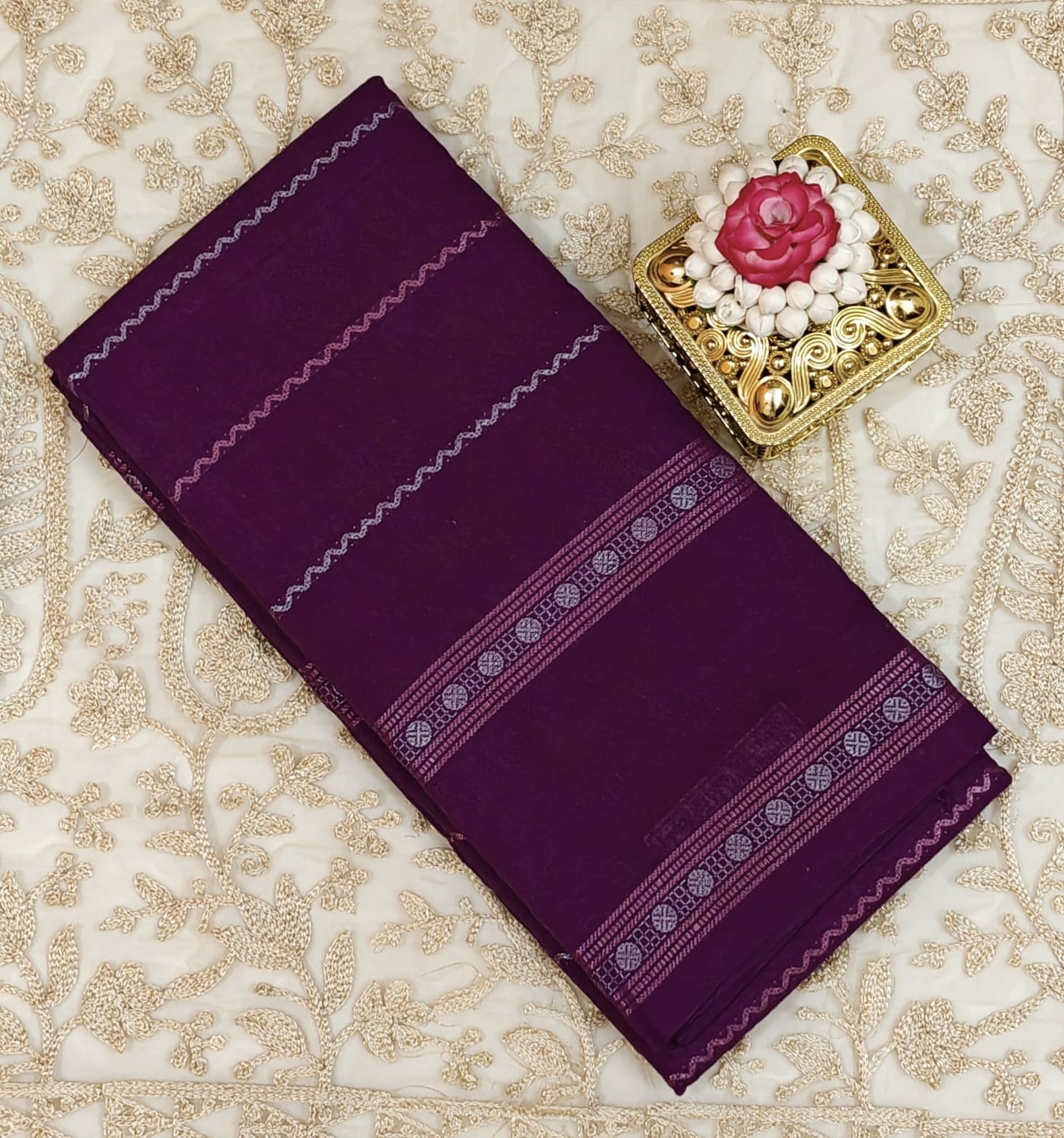 πΈ Border: Finely woven thread border with traditional circular motifs