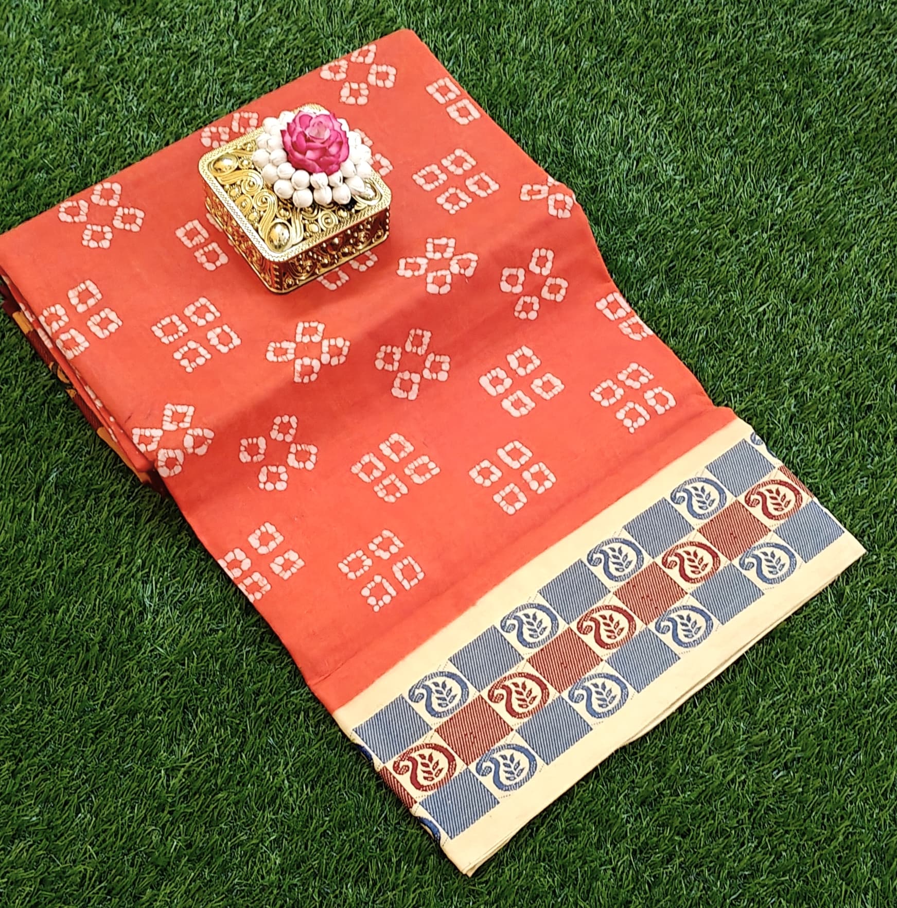 πΈ Color: Brick Orange base with white Bandhani-style motifs